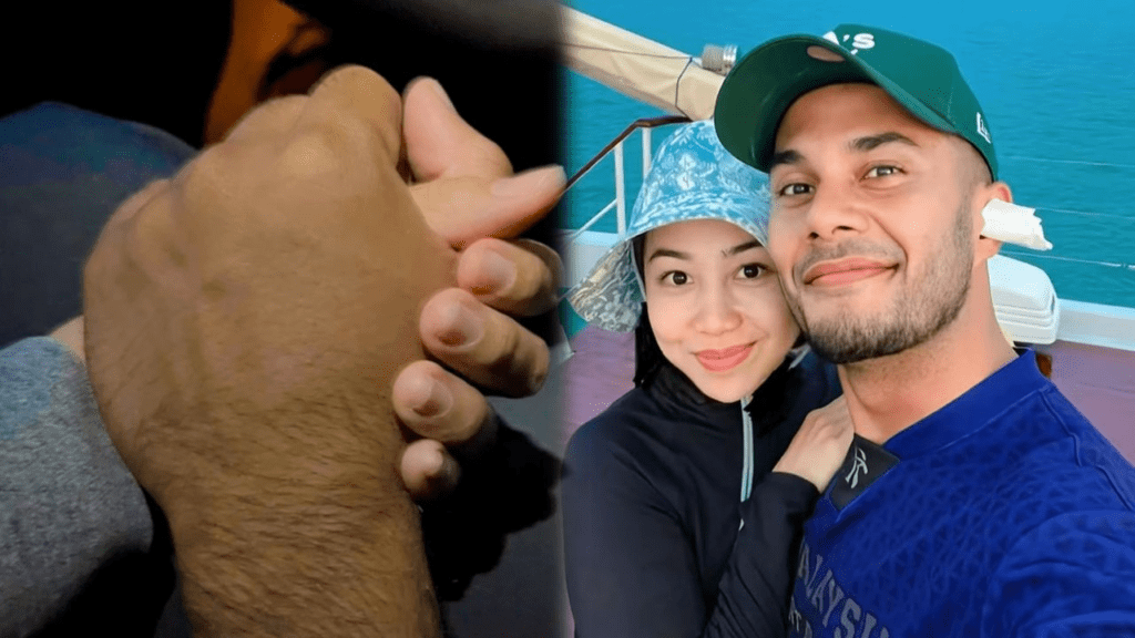 dia berpegangan tangan dengan seseorang, dipercayai suaminya, Fikry. Walaupun