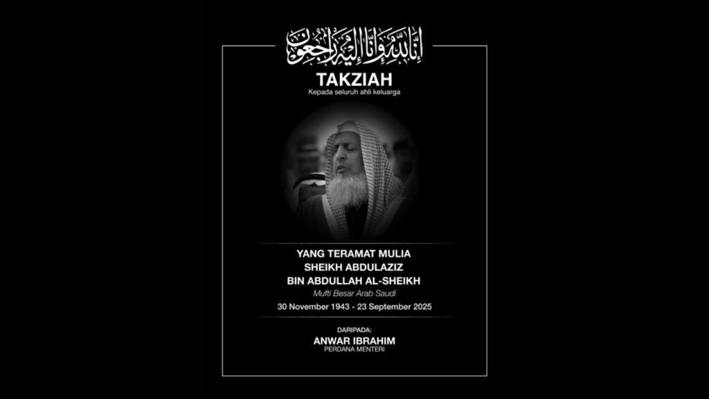 PETALING JAYA: Perdana Menteri, Datuk Seri Anwar Ibrahim, menyampaikan ucapan takziah dan rasa dukacita atas pemergian Mufti Besar Arab Saudi, Sheikh Abdulaziz bin Abdullah Al-Sheikh, yang disifatkannya sebagai satu kehilangan besar buat umat Islam seluruh dunia.