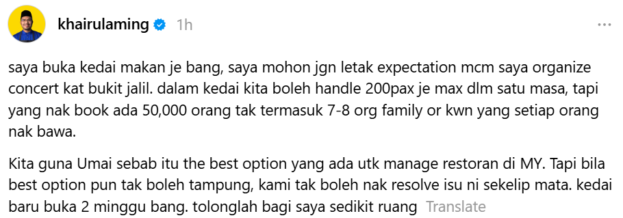 “Saya Buka Kedai Makan Je, Bukan Nak Buat Konsert” – Khairul Aming
