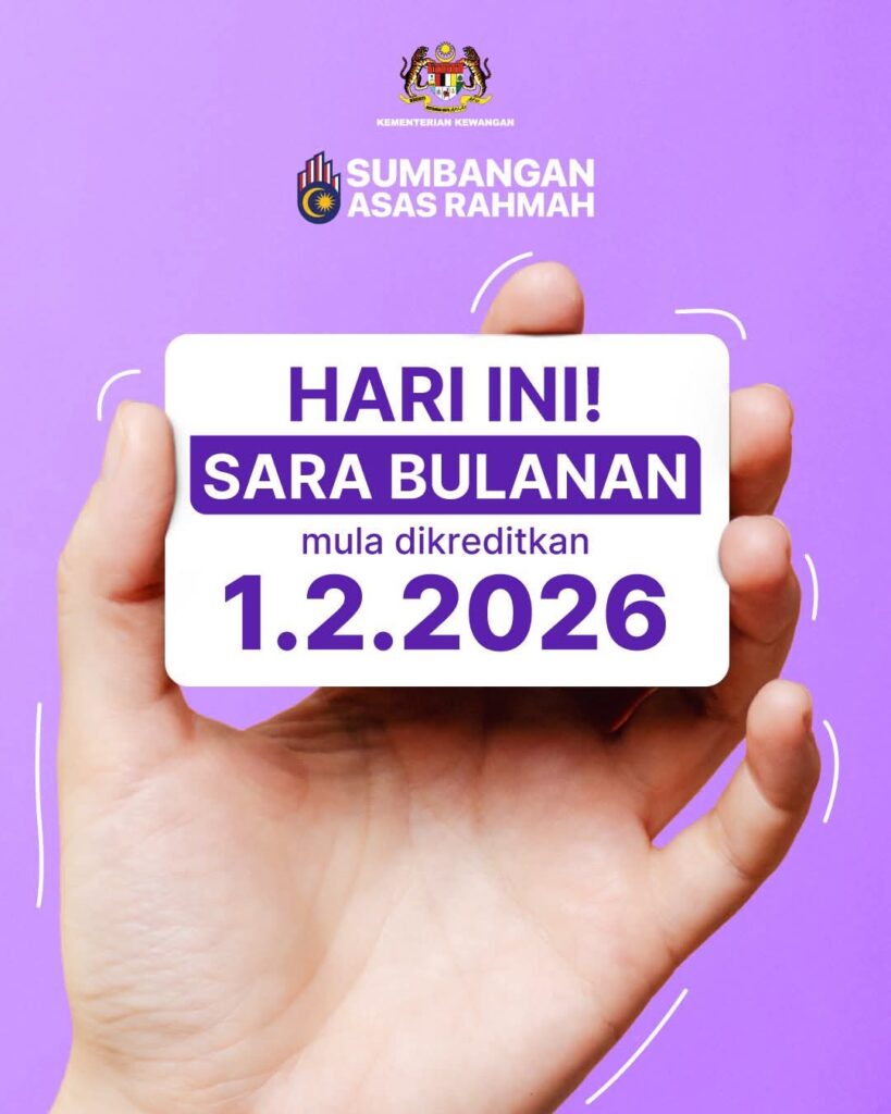 PETALING JAYA: Berita baik untuk penerima Bantuan Sumbangan Asas Rahmah (SARA), bantuan bulanan kini sudah mula dikreditkan ke dalam MyKad penerima yang layak hari ini (Ahad).