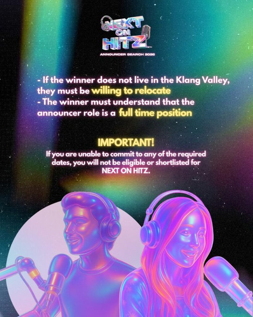 Itulah konsep terbaru yang dibawakan oleh stesen radio popular HITZ menerusi pencarian bakat “NEXT ON HITZ”, yang kini sedang dibuka untuk generasi baru yang berani tampil dan nak cuba nasib dalam dunia penyiaran.